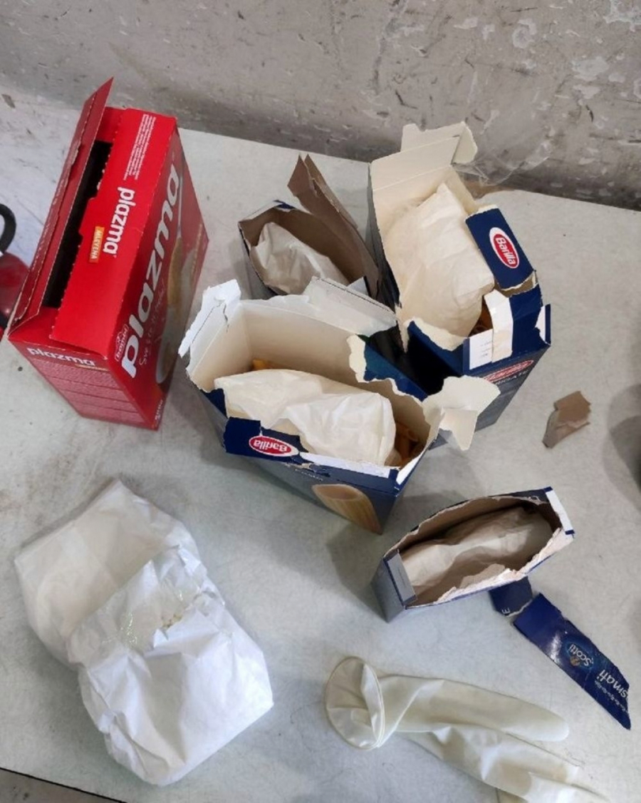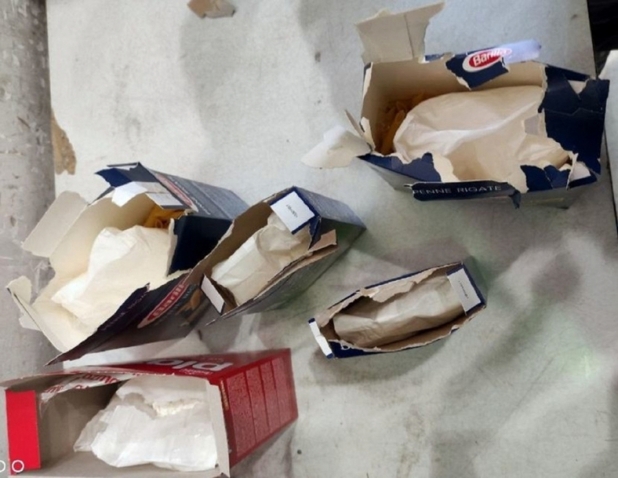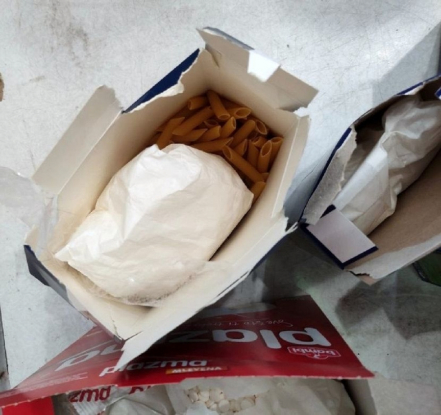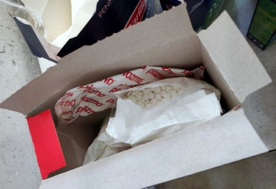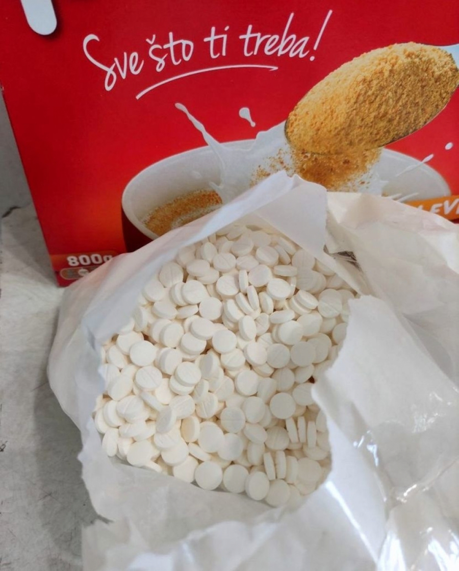 U kutijama "plazme", pirinča i makarona pronađeno je ukupno šest papirnih kesa punih tableta bele boje sa oznakom "M1".