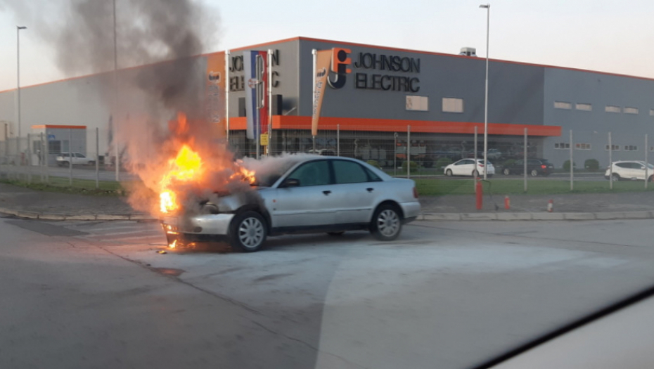 Vozilo je zstavljeno na uglu prilaznog puta ispred fabrike "Džonson elektrik". U trenutku izbijanja požara u automobilu nije bilo nikoga.
