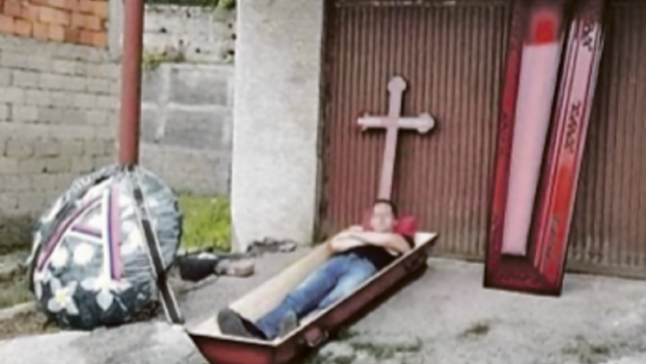 - Policija je odmah po pozivu krenula da traži mladića po gradu, a zatim su otišli do njegove kuće i ostali šokirani prizorom koji su zatekli! N. L. je položio sanduk u dvorištu, legao u njega prekrstivši ruke, a na vrata garaže navalio je krst da mu bude baš iznad glave. Okolo su bili venci i cveće - kaže izvor upućen u slučaj.