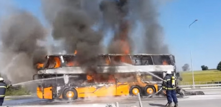 Zapalio se novosadski autobus na granici sa Makedonijom