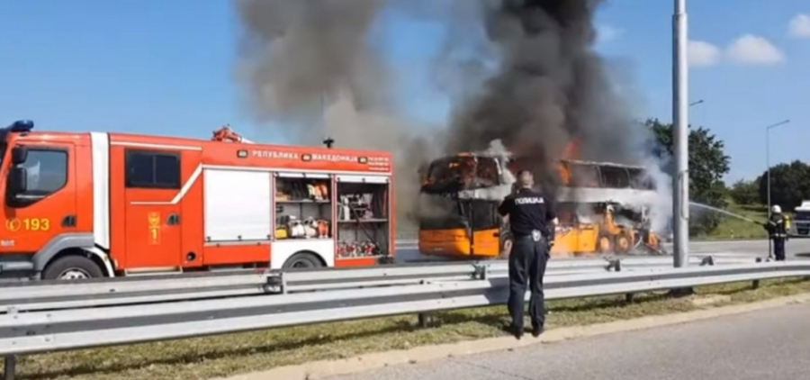 Autobus pun putnika sa novosadskim registarskim oznakama zapalio se danas oko 16 časova na graničnom prelazu " Tabanovce" između Makedonije i Srbije zbog čega su morali da intervenišu vatrogasci.