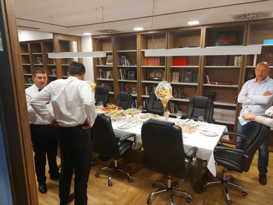 20.09 - Direktor JP "Putevi Srbije", Zoran Drobnjak, stigao je u štab sa poklonom.