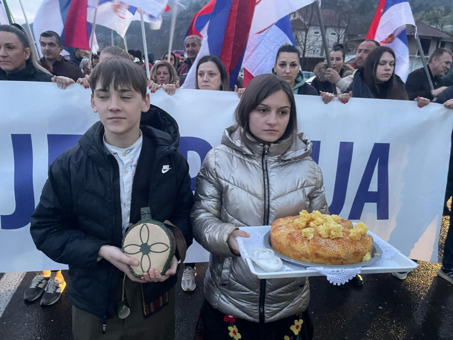 SO I POGAČA PO SRPSKIM OBIČAJIMA Građani Ušća dočekali Srbe sa Kosmeta koji pešače do Beograda (FOTO/VIDEO)