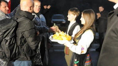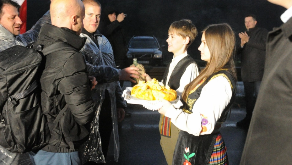 Emotivna scena koju su zabeležili reporteri "Novosti" zabeležena je u mestu Ušće gde su pešake dočekali građani. Dok odjekuje "Kosovo je srce Srbije", narod sa KiM se služi pogačom.
