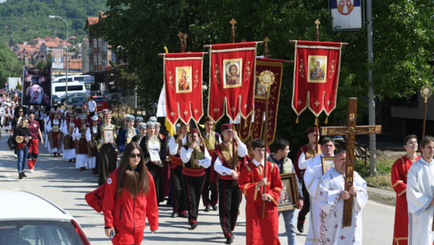 Nakon liturgije ulicama Leposavića je krenula litija, tokom koje je razvijena velika zastava Srbije duga više od 20 metara.