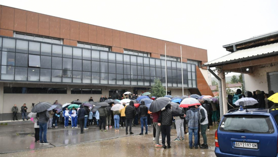 Više od stotinu dece zajedno sa svojim roditeljima došlo je ovog jutros po jakoj kiši ispred sportske hale u Severnoj Mitrovici kako bi izrazili protest zbog, kako navode, protivzakonitog uzurpiranja sportskog objekta od strane tzv. Kosovske policije.