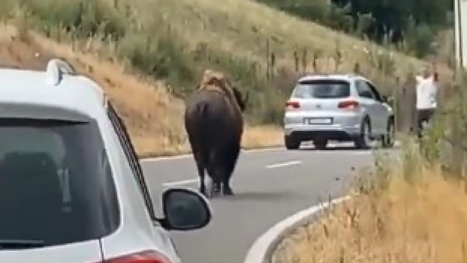 Dan ranije, drugi video-snimak objavljen na internetu prikazuje bizona kako prelazi put blizu brda u blizini Prištine.