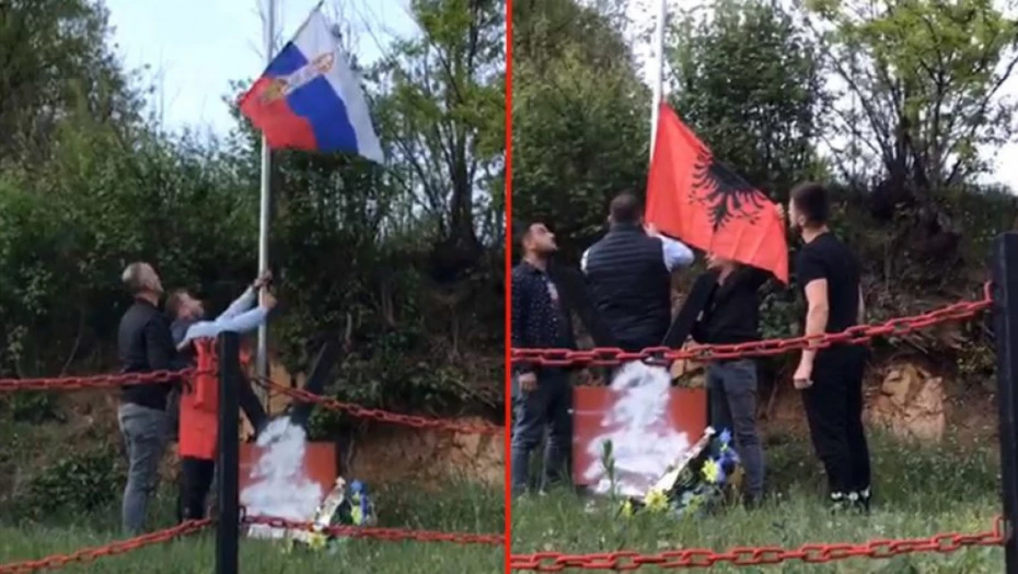Kako navode, na društvenim mrežama pojavio se snimak na kojem se vidi kako Musliju, u društvu nekoliko građana albanske nacionalnosti, skida u Končulju, naselju u opštini Bujanovac koje se nalazi na administrativnoj liniji između KiM i centralne Srbije, srpsku trobojku sa jarbola i podiže zastavu Albanije.