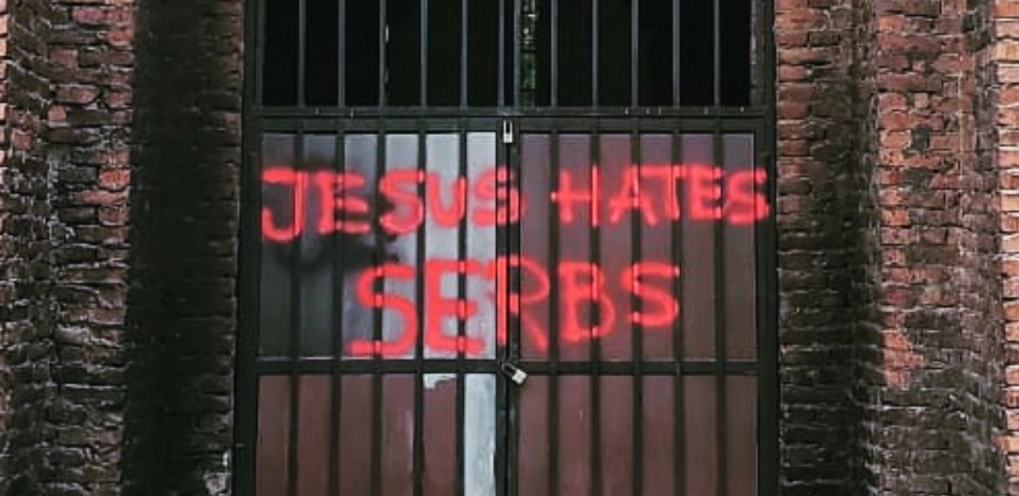 Grafit mržnje koji je prekjuče osvanuo na jednoj srpskoj pravoslavnoj crkvi u Prištini, tzv. prestonici "Kosova", gde je sada ostalo samo oko 90 starijih Srba, od ukupno 45.000 hiljada Srba koji su tu živeli u periodu pre rata.