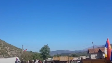 Pola sata pre aviona, prostor na kojem su raposređeni specijalci policije i okupljeni na protestu nadletao je helikopter Kfora.