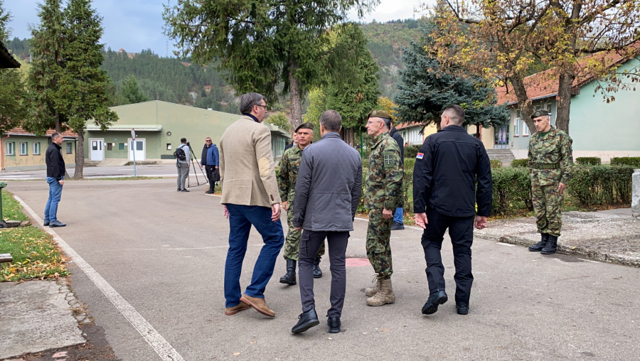 Predsednik Vučić je stigao u garnizon Vojske Srbije u Raškoj, gde je obišao vojnike, a zatim će obići i jedinice Žandarmerije u toj oblasti.
