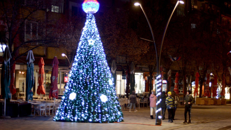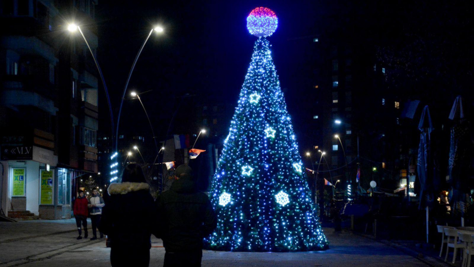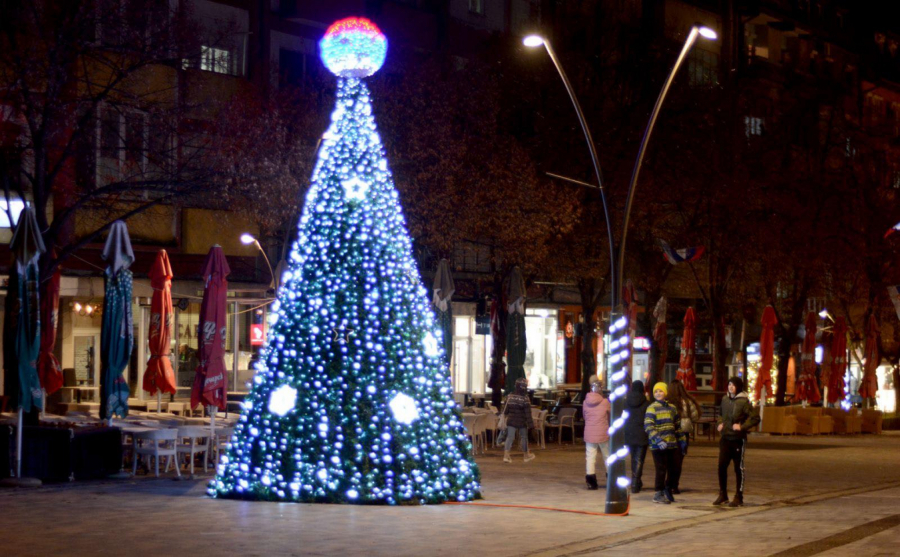 Kosovska Mitrovica večeras je zasijala u punom sjaju, kada je na glavnom gradskom šetalištu upljena novogodišnja rasveta.