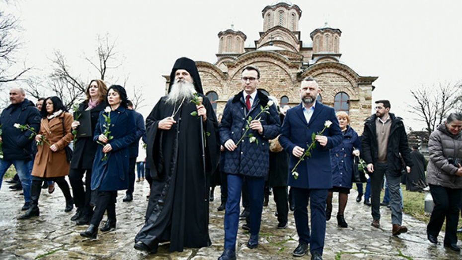 Petković je prvo prisustvovao parastosu stradalima koji je u manastiru Gračanica služio vladika raško-prizrenski i kosovsko-metohijski Teodosije, a potom je na spomeniku nevinim žrtvama "Missing" ispred Doma kulture u Gračanici položio bele ruže.
