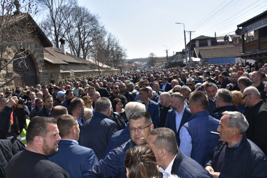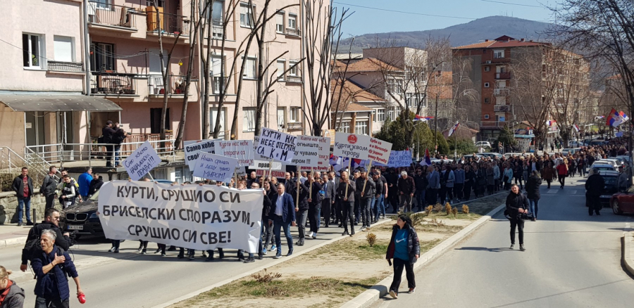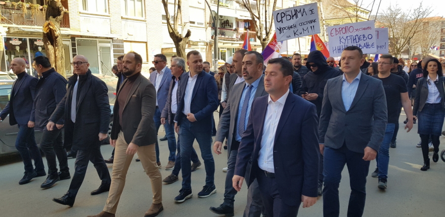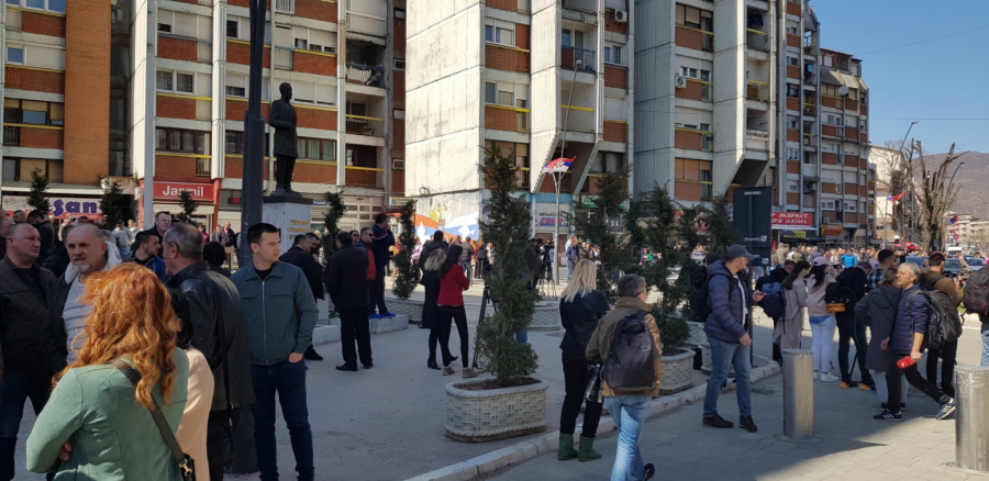 U isto vreme u severnom delu Kosovske Mitrovice nekoliko hiljada Srba se okupilo predvođeni srpskim gradonačelnicima sa severa i predstavnicima Srpske liste ispred spomenika knezu Lazaru i kreću se pored srednjih škola i Univerziteta u pravcu kružnog toka i nazad prema spomeniku.