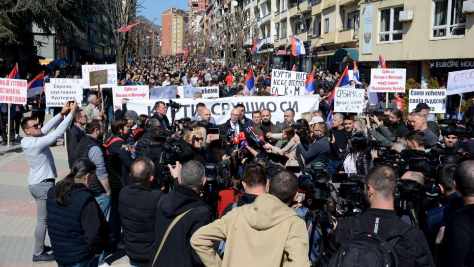 On se najpre zahvalio građanima za miran protest, a potom i pozvao "da ne potpadaju pod uticaj autoritarnog režima u Beogradu, kojeg ne zanimaju prava i dobrobit Srba na Kosovu"!