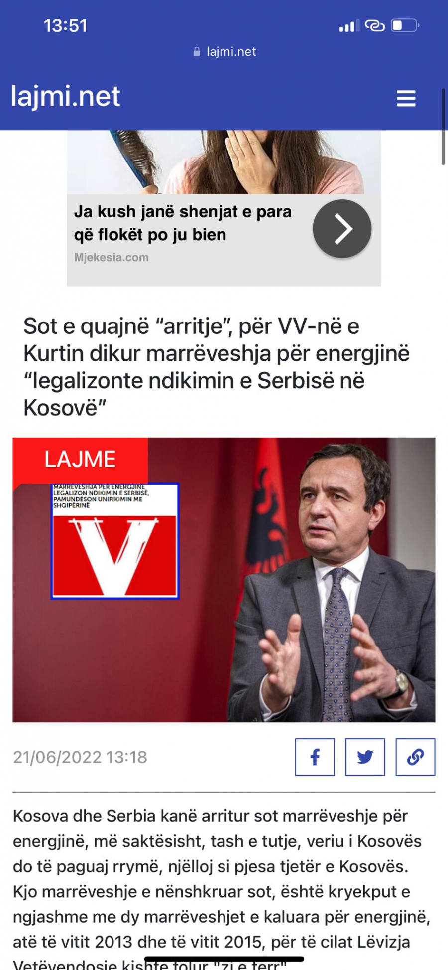 Širom Kosova ovaj potez Kurtijeve vlade i potpisivanje energetskog sporazuma okarakterisan je kao izdaja, legalizacija uticaja Srbije na Kosovu i povratak južne pokrajine pod suverenitet Srbije.