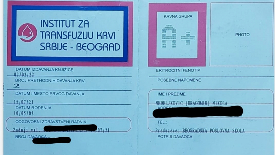 Takođe, među dokazima koje je njegov advokat ponudio a kog je odmah angažovala Kancelarija za KiM, nalazi se i knjižica da je Nikola sa svega 20 godina već dobroboljni davlac krvi, dakle mladić plemenitih namera i postupaka.