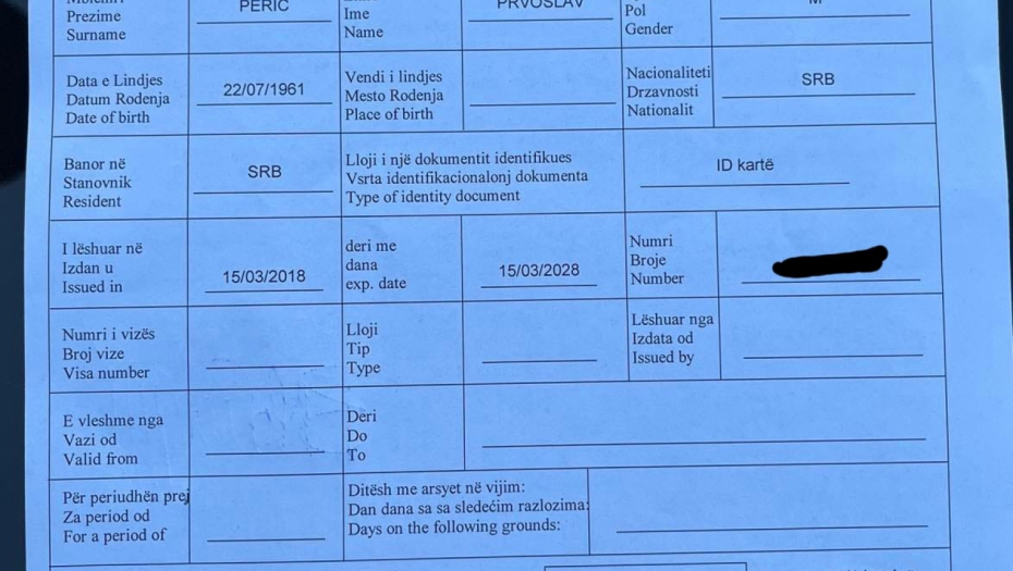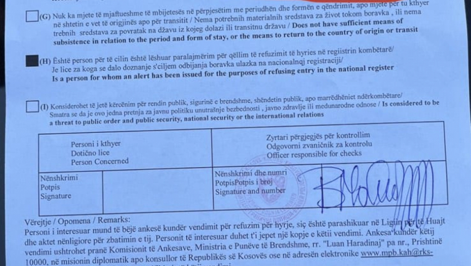 SRAMNO! Ovo je Kurtijev papir kojim je Porfiriju odbijen ulazak KiM (FOTO)
