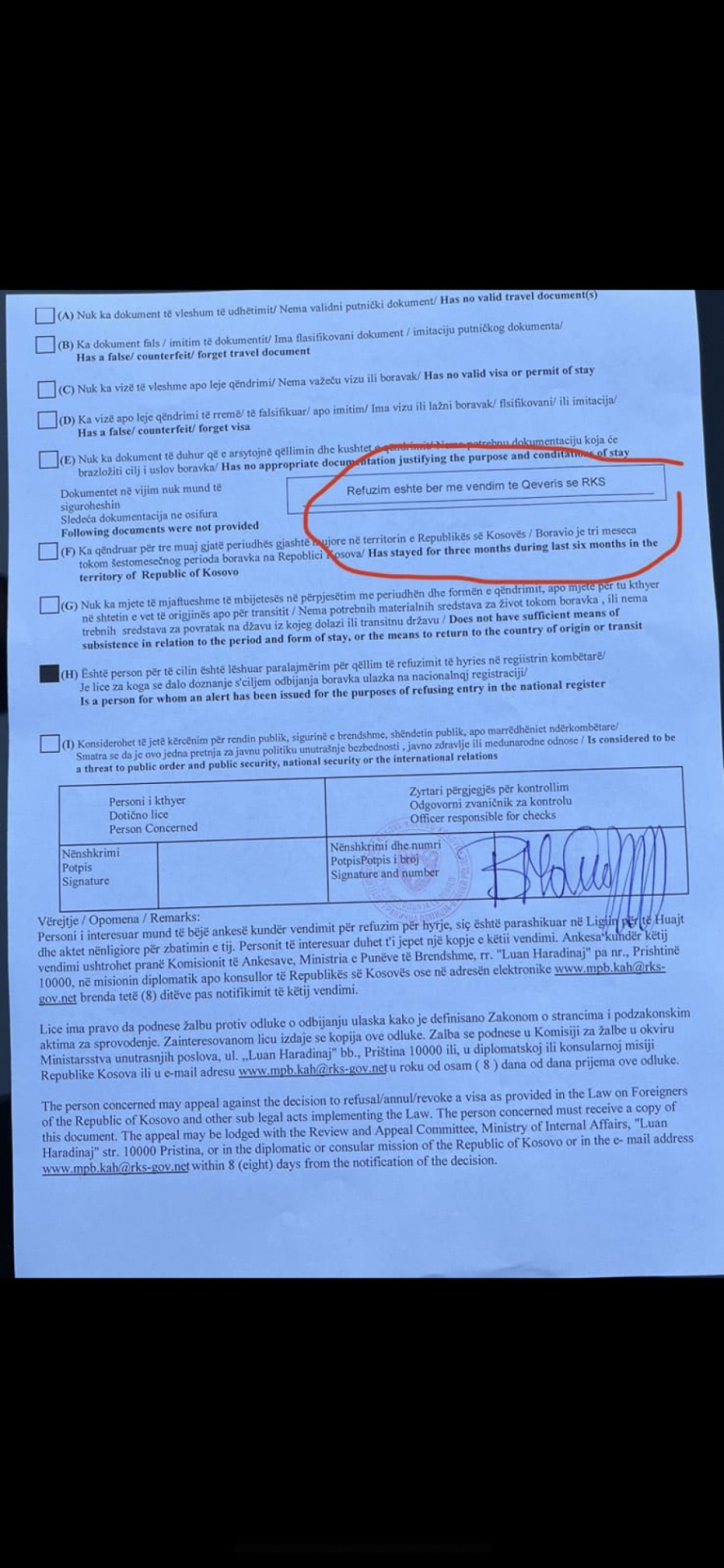 Ovo je sramni papir kojim je je Porfiriju odbijen ulazak na KiM danas na Merdaru.