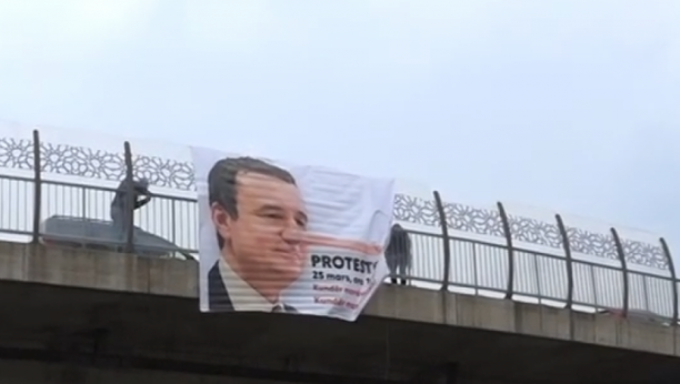 Aktivisti SDP su na mostu postavili transparent sa likom lažnog premijera Kosova Aljbina Krtija koji je prikazan kao lik iz crtanog filma Pinokio, sa izduženim nosem. Ispod karikature je bilo ispisano „ Protiv sporazuma, protiv prevare“.