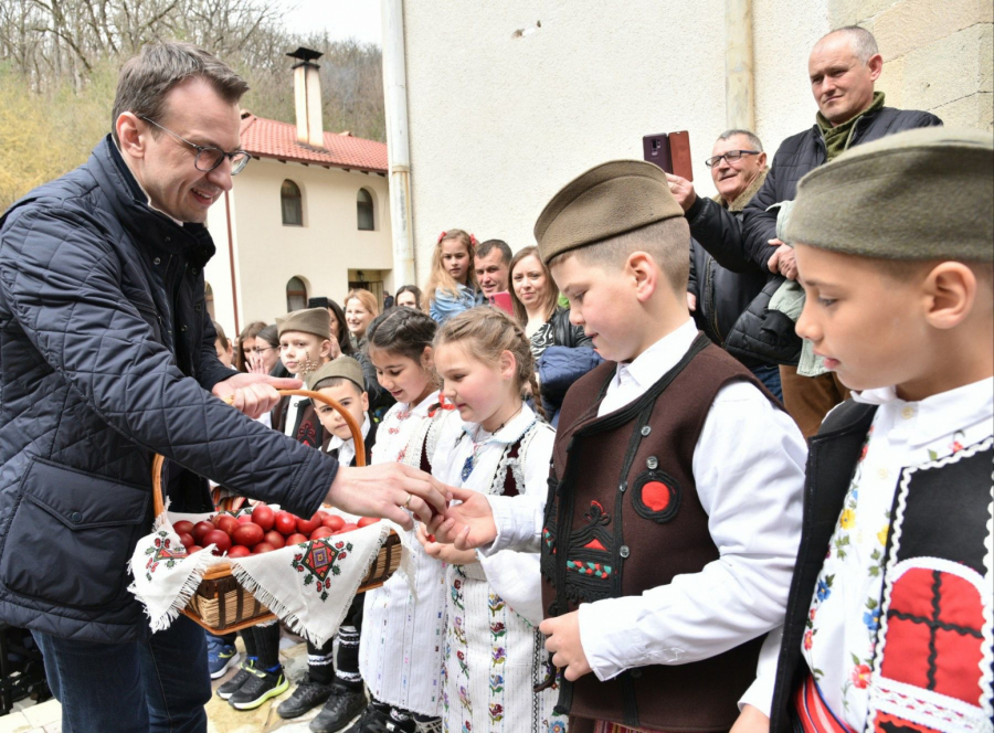 Petković, koji je u Dragancu, boravio zajedno sa episkopima raško-prizrenskim Teodosijem i novobrdskim Ilarionom, podelio je vaskršnja jaja deci i razgovarao sa žiteljima ovog kraja.