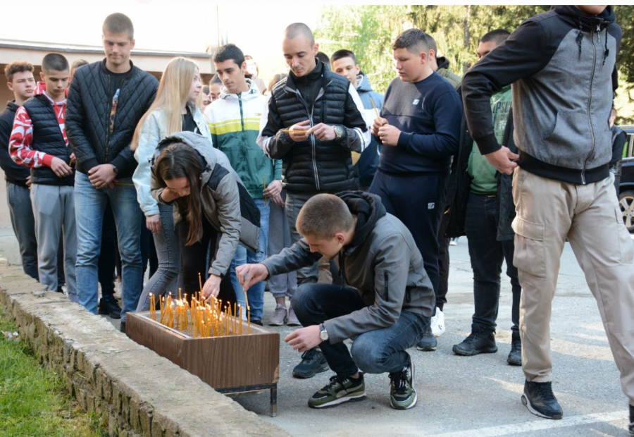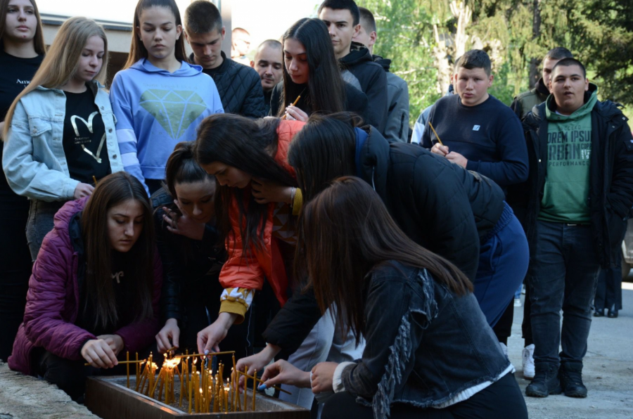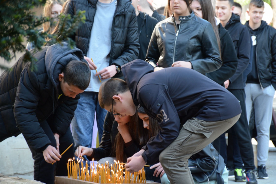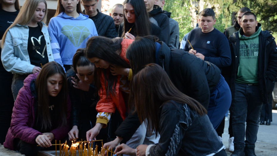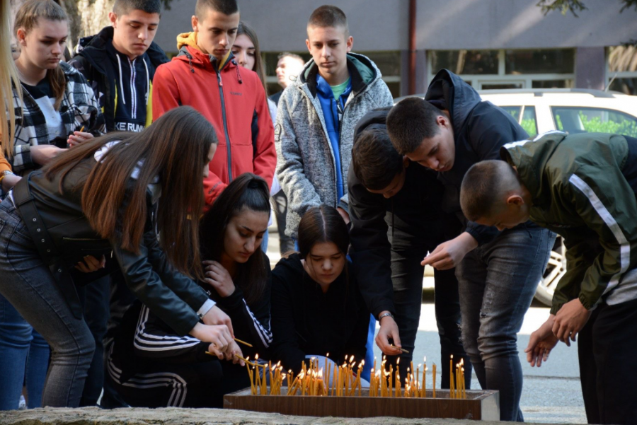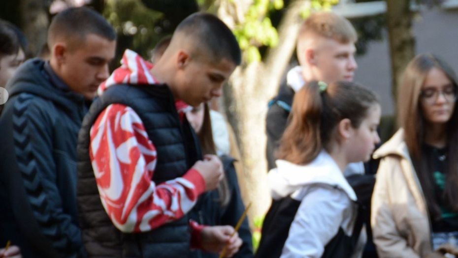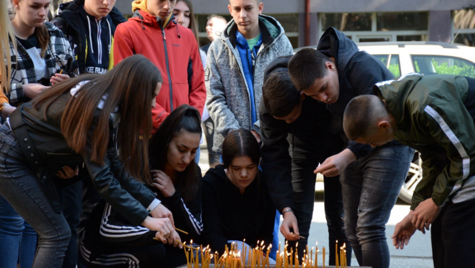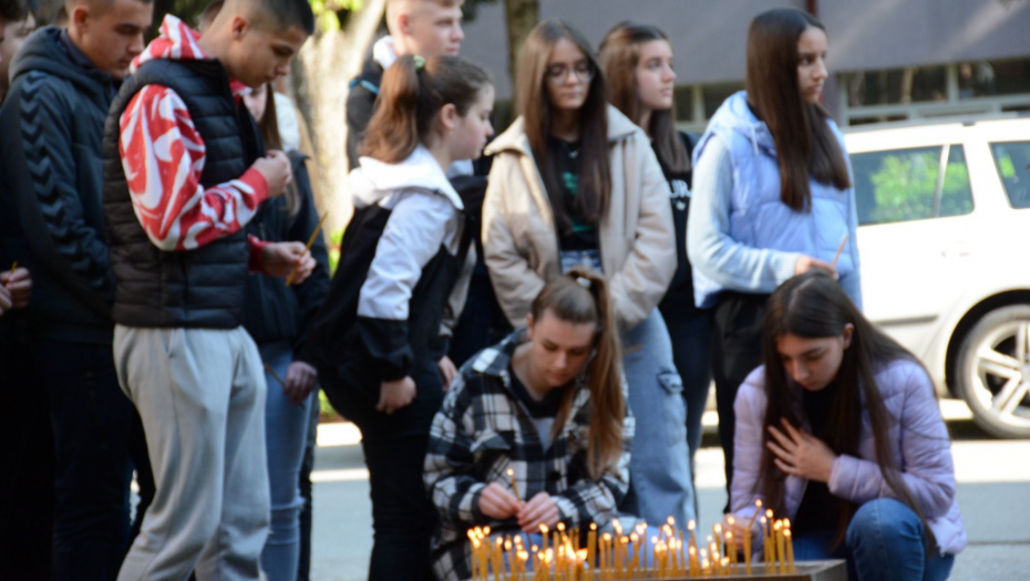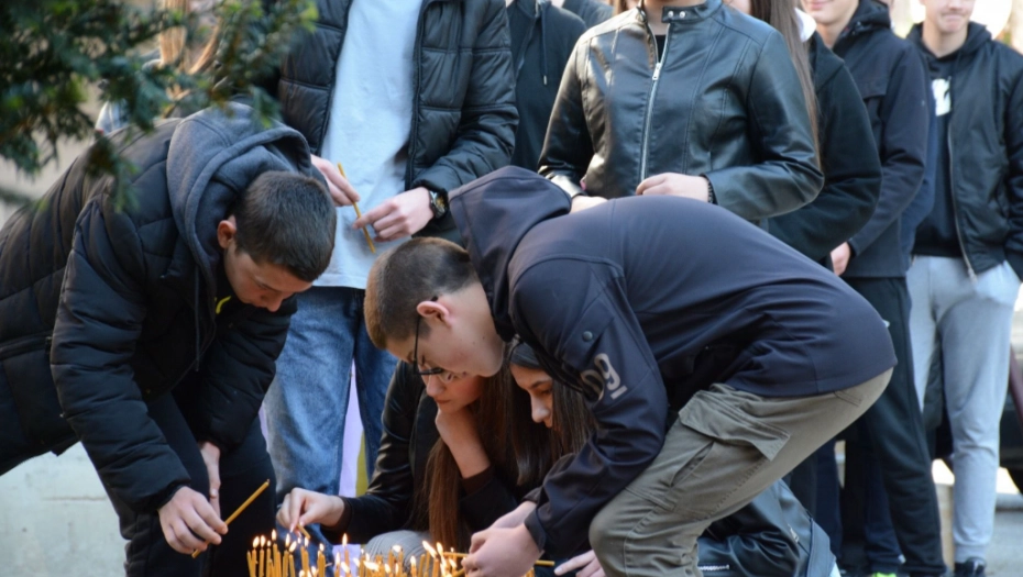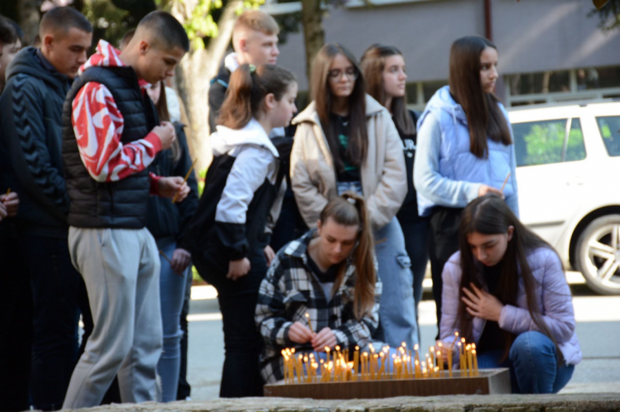 PALJENJE SVEĆA U Zvečanu, ispred srednje škole, veliki broj mladih odaje počast nastradalim drugarima (FOTO)