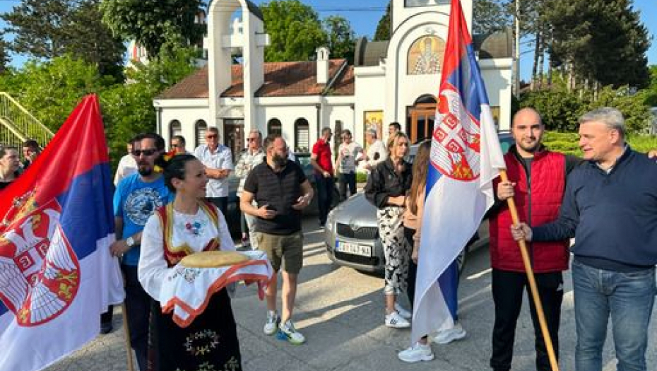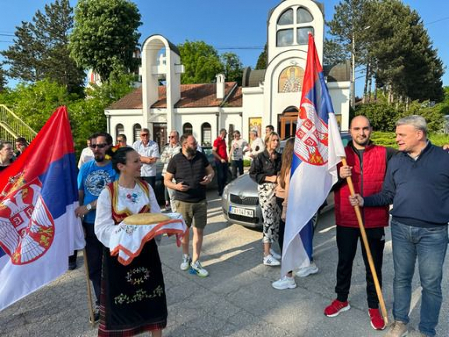 Ispred crkve kod Preljine, sačekali su ih gradonačelnik Čačka Milun Todorović i grupa meštana i aktivista SNS, sa zastavama Srbije.