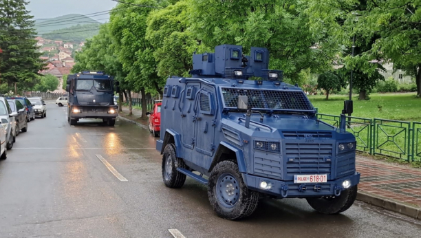 Nakon ulaska pripadnika Kosovske policije uz suzavac i šok bombe u zgradu opštine Zvečan, oklopna vozila patroliraju ulicama tog grada.