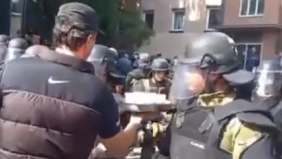 Srbi su poznati kao neustrašiv, ali i gostoljubiv narod, pa je tako muškarac koji se nalazi ispred zgrade opštine u Zvečanu, propadnike Kfor-a nudio kafom, ali kako se na snimku vidi oni nisu baš bili zainteresovani.