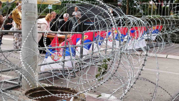 07.30 - Zastave na ogradi sa bodljikavom žicom u Zvečanu