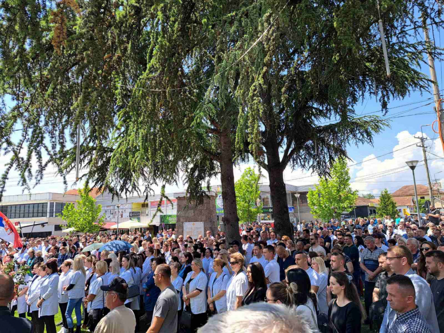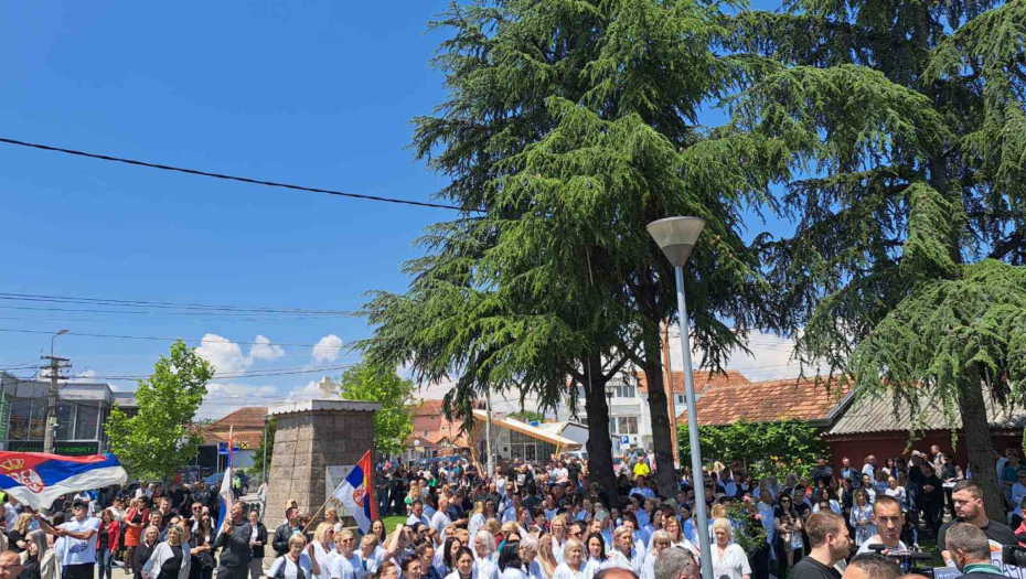 Takođe, radnici Doma zdravlja iz Donje Gušterice peške su stigli ka Gračanici na mirni miting podrške Srbima sa severa Kosova i Metohije.