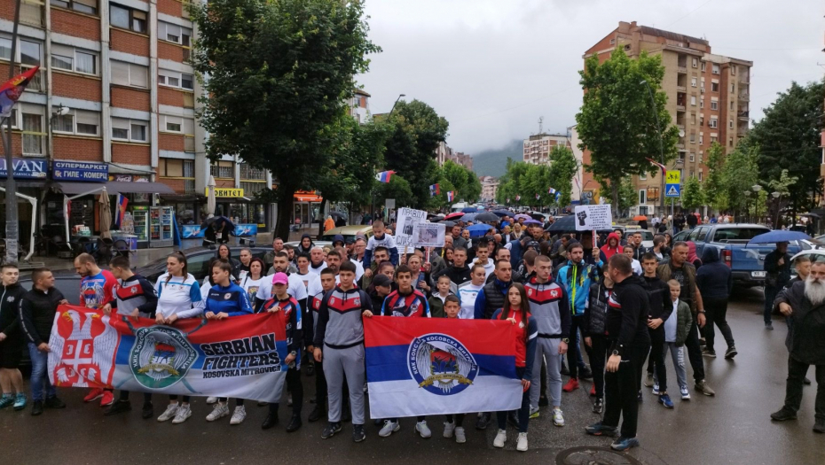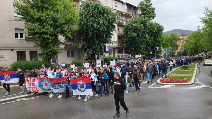 PROTESTNA ŠETNJA U KOSOVSKOJ MITROVICI U ZNAK PODRŠKE Uprkos kiši hiljade Srba šeta danas za Luneta, Radoša Petrovića i Dušana Obrenovića (FOTO)