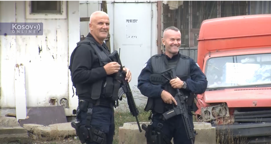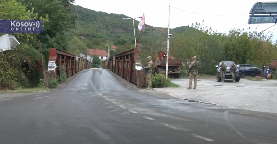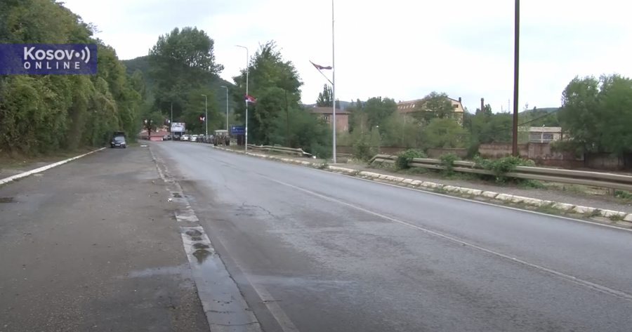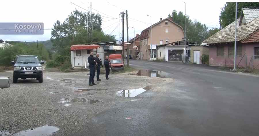 Na samom skretanju za Banjsku stoji blindirano vozilo tzv. kosovske policije i nekoliko policajaca sa dugim cevima, dok je jedno vozilo na brdu iznad puta.