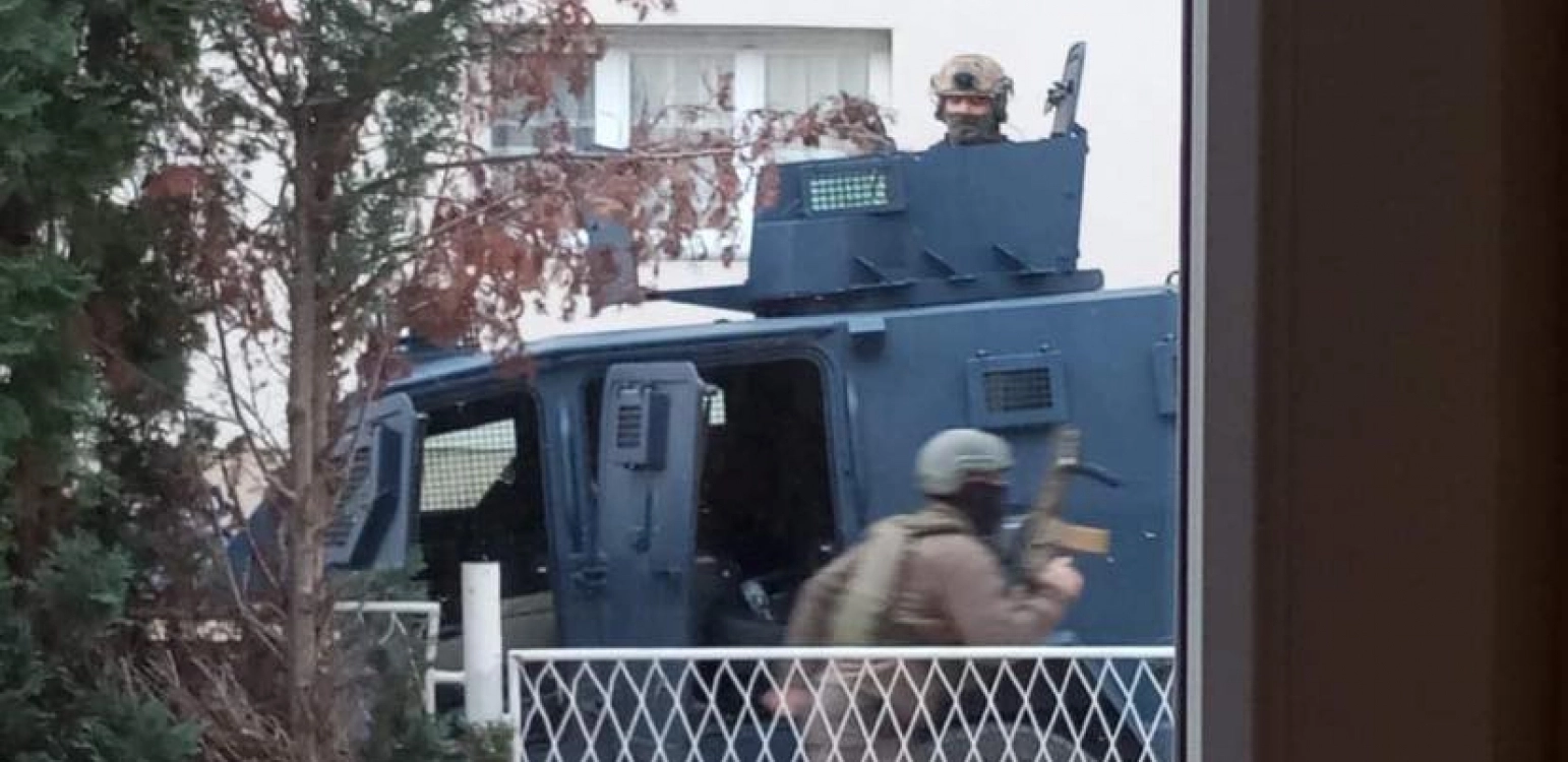 Specijalci takozvane kosovske policije nasilno su upali rano jutros u Kliničko-bonički centar u Kosovskoj Mitrovic, a pretrese su vršili i u blizini kafića Grej u Severnoj Mitrovici, koji se nalazi na 10 metara od predškolske ustanove "Danica Jaramaz".