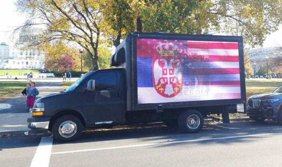 Kamion je primećen tokom dana, a prema informacijama sa društvenih mreža, organizator je srpska dijaspora u SAD.