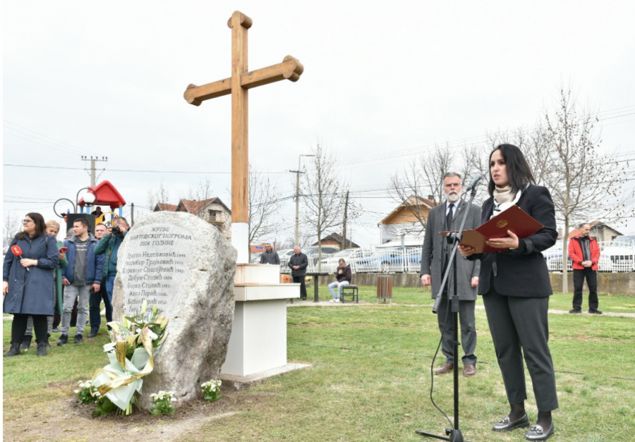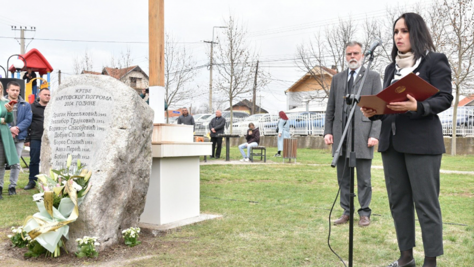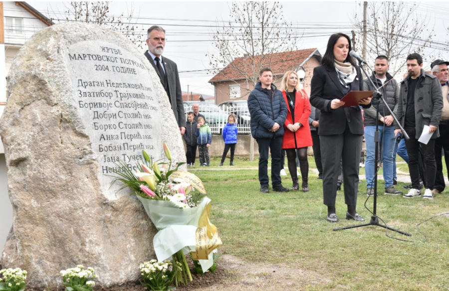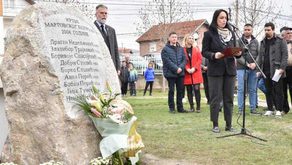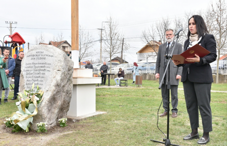 – Na inicijativu Vlade Republike Srbije i Kancelarije za Kosovo i Metohiju danas otkrivamo spomen ploču u znak sećanja na naše stradale sugrađane u martovskom pogromu. Na inicijativu predsednika Srbije Aleksandra Vučića mi danas negujemo kulturu sećanja i sa dužnom se pažnjom i pijetetom sećamo svih naših žrtava. Cilj otkrivanja ove ploče je negovanje kulture sećanja na najteži dan srpskog stradanja na KiM. Simbol podsećanja na otrgnute srpske živote. Imena stradalih su u ovaj kamen uklesana i svedoče o našim mučenicima. Ovaj kamen sa Šar planine simbol je snage, jačine i opstajanja srpskog naroda na ovim prostorima. Simbol je snage našeg naroda da izdrži golgotu kroz koju prolazi, ali i simbol nekažnjenog zločina već 20 godina – rekla je Dušica Nikolić.