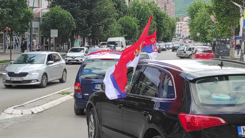 Kako se može videti na snimcima kolone vozila sa srpskim trobojkama provezle su se centrom grada oko spomenika Cara Lazara.