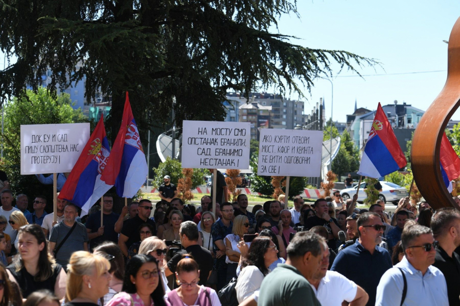 Nekadašnji sudija Višeg suda u Kosovskoj Mitrovici Nikola Kabašić, koji je govorio na protestu, istakao je da nije vreme za otvaranje mosta i da su Srbi u tome saglasni.