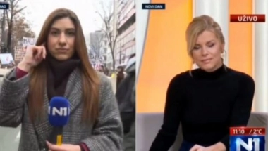 Voditeljka N1: "Vraćamo se sada studentima u Beogradu. Studenti Pravnog fakulteta našli su se ispred Skupštine Srbije sa onima koji su došli iz pravca Rektorata. Tamo je naša Tamara Stojanović. I, kakva je atmosfera tu Tamara?"
