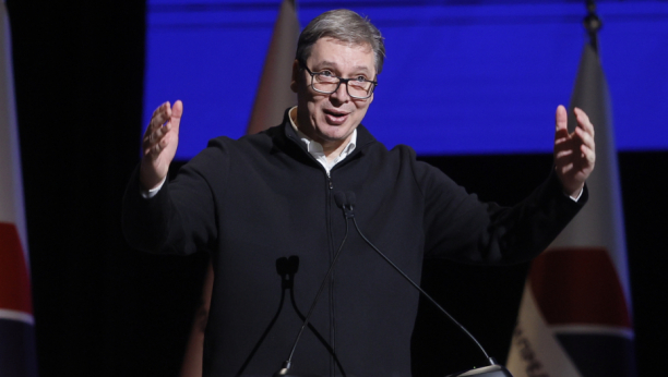 "I ne prihvatajte pritisak, i ne prihvatajte da vas plaše, i nemojte da vam strah kalja obraz, jer na kraju uvek ćete da poštujete i da se divite samo hrabrim ljudima, koji imaju principe, koji imaju moral, koji imaju snagu i koji vole svoju zemlju. A mi imamo samo jednu Srbiju, samo jednu otadžbinu i nećemo je dati nikome. Ni KiM, ni Srbiju u celini, nikome nećemo dati. Ni ovima plaćenim spolja, ni drugima koji misle da nam državu otmu", poručio je Vučić na tribini SNS "Budućnost, a ne prošlost".