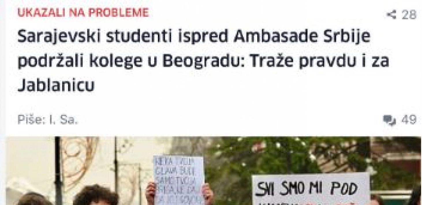 Pa, studenti iz Sarajeva, 27 poginulih ljudi i vi ste bili potpuno nečujni, ali kad treba rušiti Srbiju, tu ste kao najglasniji aktivisti.