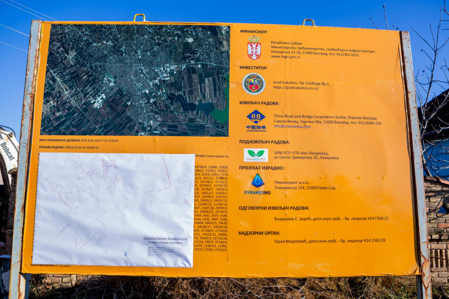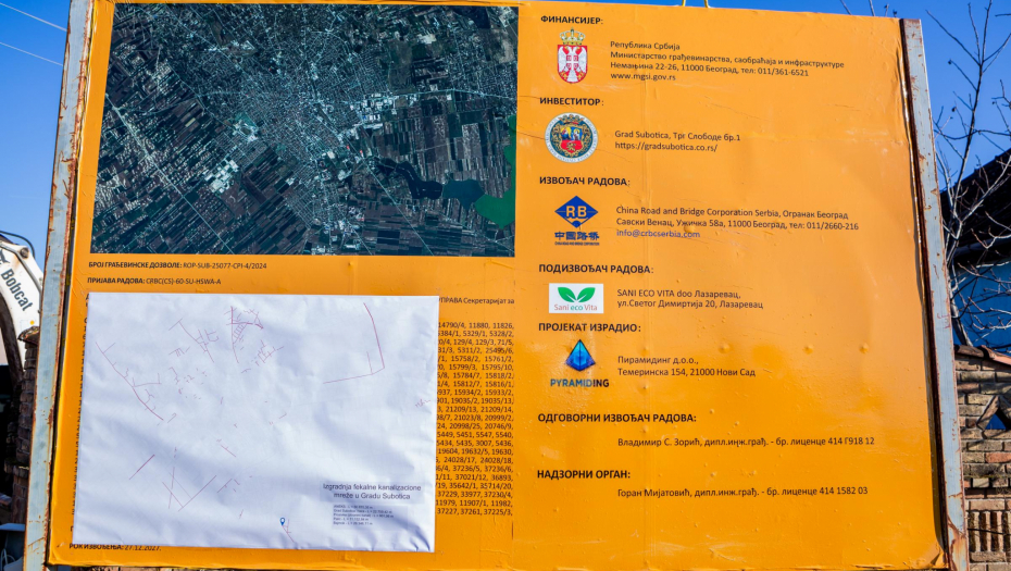 Dodao je da je početkom maja 2023. godine potpisan relevantni aneks br. 60 komercijalnog ugovora o projektovanju i izvođenju radova na izgradnji komunalne, odnosno kanalizacione infrastrukture u Republici Srbiji, između Vlade Republike Srbije, koju je predstavljao tadašnji ministar građevinarstva, saobraćaja i infrastrukture Goran Vesić, Grada Subotice, kao investitora i kineske kompanije „CRBC“, kao izvođača radova.