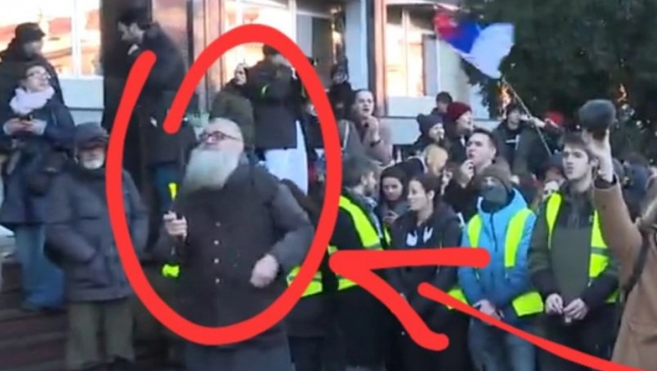 Na današnjem protestu studenata se pojavio i raščinjeni monah Antonije Davidović.