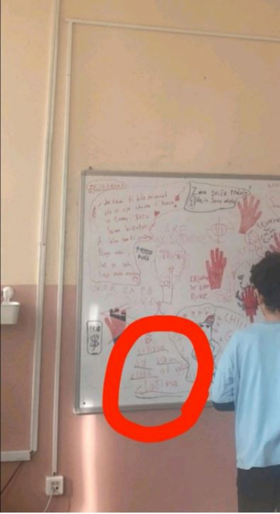 Deca su navodno dobila zadatak da crtaju na tabli simbole crvene šake i ispisuju parole poput „Krvave su vam ruke od vaših zločina“, koje koriste učesnici protesta. Ovo, kako se tvrdi, nije spontana aktivnost, već deo šireg političkog angažmana, iza kojeg stoji producent jedne od opozicionih emisija.