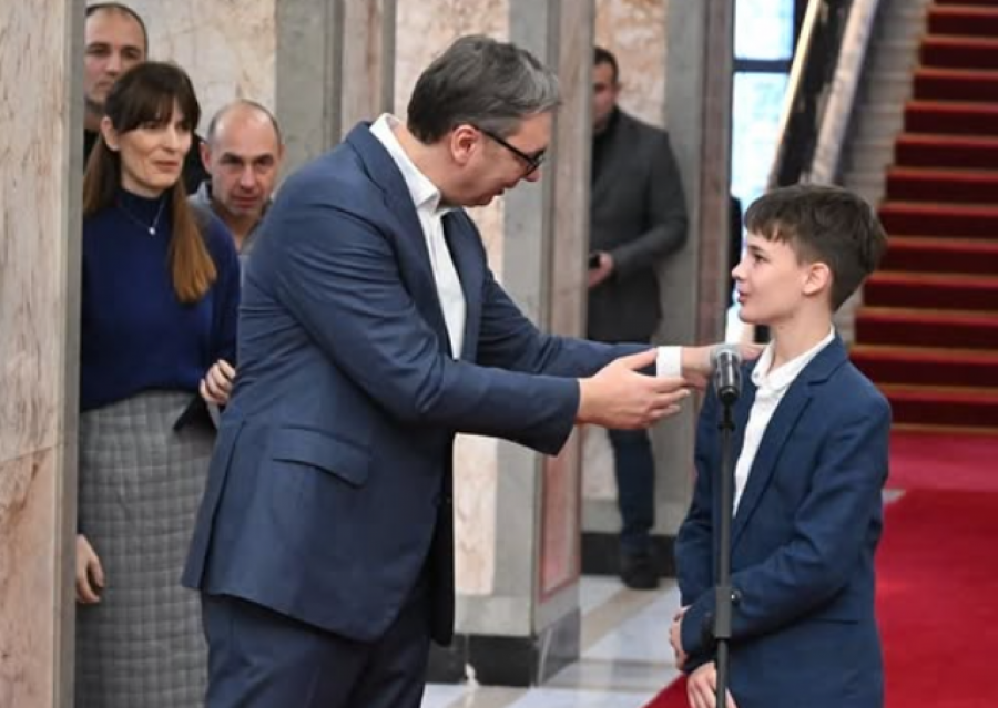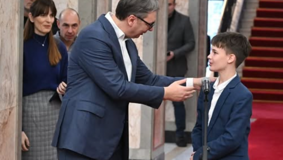 Dečak iz Rumunije, koji se nalazi u poseti Beogradu, zahvalio se predsedniku na brizi za sve, i potom su mu predali poklon.