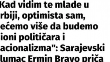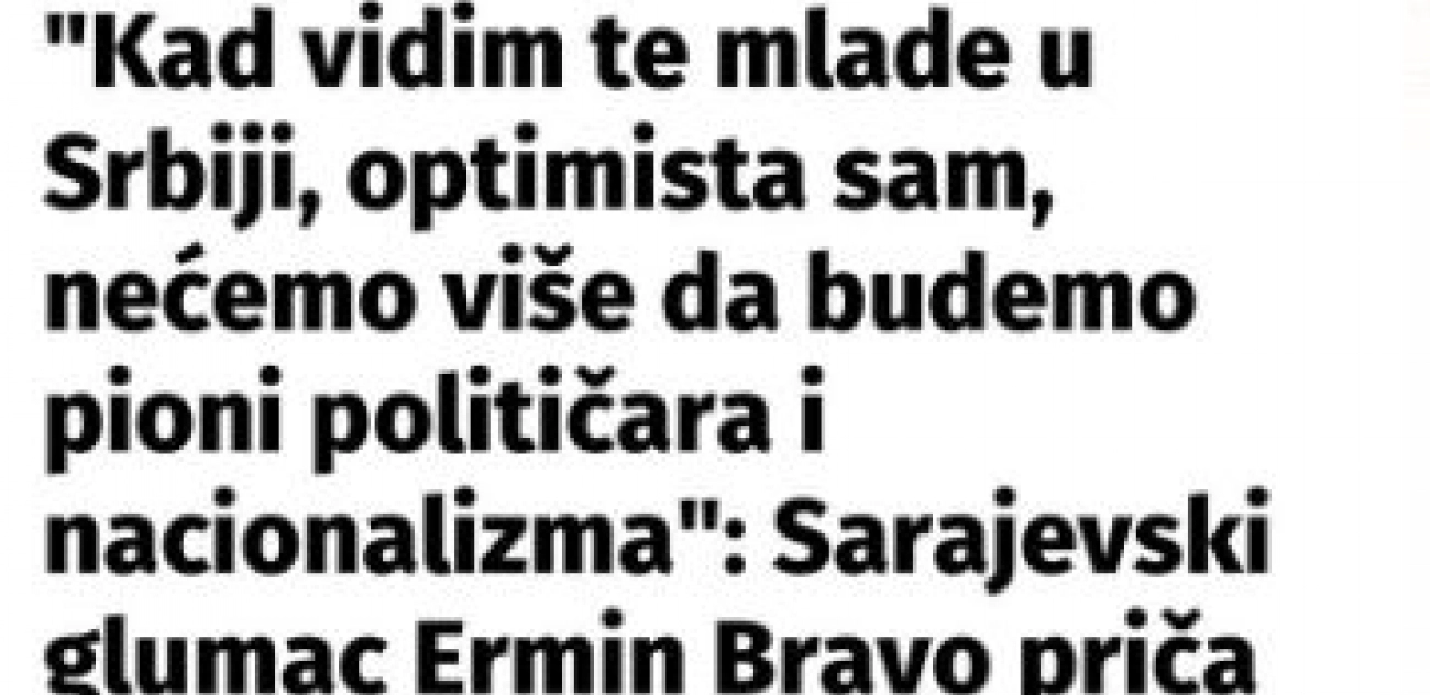 "Kad vidim te mlade u Srbiji, optimista sam, nećemo više da budemo pioni političara i nacionalizma": Sarajevski glumac Ermin Bravo...