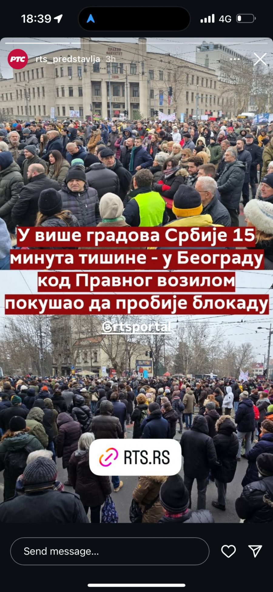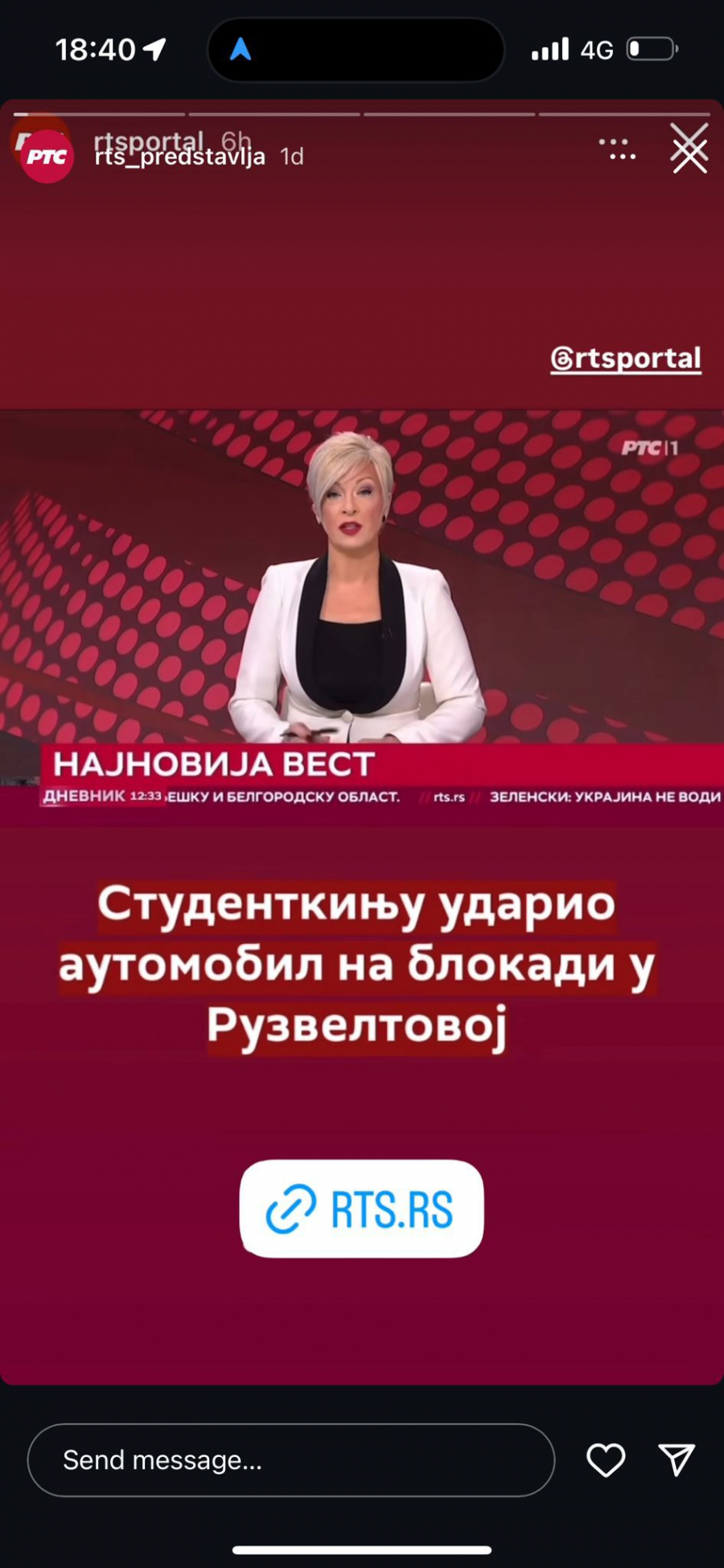 Радио телевизија Србије извештава објективно и потпуно, те је нејасно свим грађанима шта заправо желе сироти студенти овим блокадама.