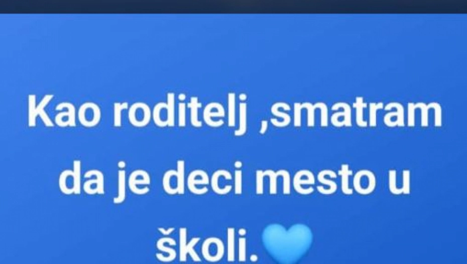 Ona je poručila u storiju da je "Deci mesto u školi"!