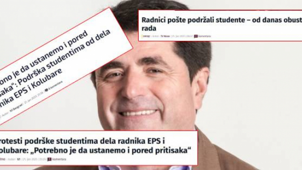 ŠOLAKOVA FABRIKA LAŽI IZNEDRILA NOVI BISER Od jednog sindikalca Pošte i jednog radnika Kolubare Nova i N1 učinile da "studente podržavaju radnici Kolubare i PTT"