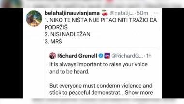 - Uvek je važno podići glas i biti saslušan. Svi moraju da osude nasilje i pridržavaju se mirnih demonstracija. Demokratski proces mora da se poštuje. Ne podržavamo one koji podrivaju vladavinu prava ili koji nasilno preuzimaju vladine institucije. Ako vam se ne sviđa zakon ili vođa, radite na tome da ih promenite - ali nemojte pribegavati nasilju - rekao je Grenel.
